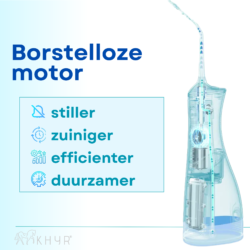 De KHYR® JetFloss i2 Waterflosser is voorzien van een borstelloze motor, wat een groot aantal voordelen heeft ten opzichte van een borstelmotor. Een borstelloze motor in een waterflosser biedt meer energie-efficiëntie en langere levensduur doordat er minder wrijving en slijtage is. Dit resulteert in een stiller en krachtiger apparaat met een lagere kans op defecten.