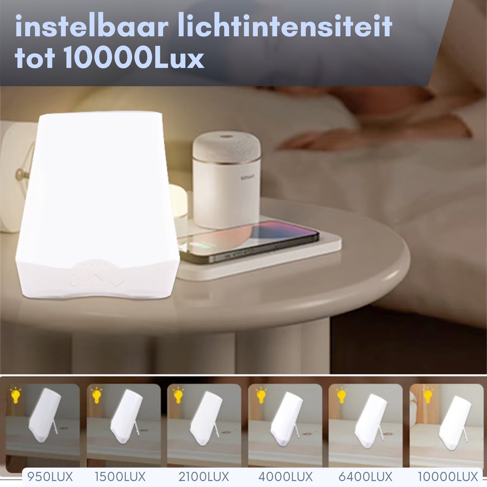 – Tot 10.000 lux instelbare lichtintensiteit voor een krachtige energieboost