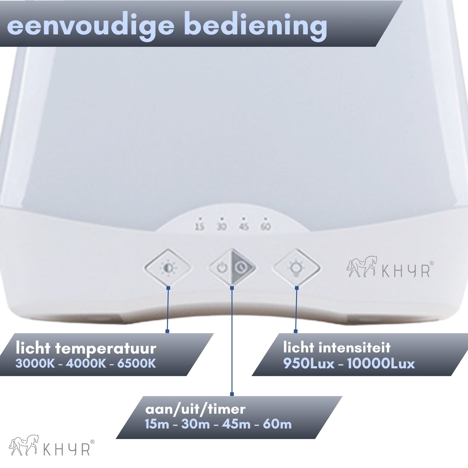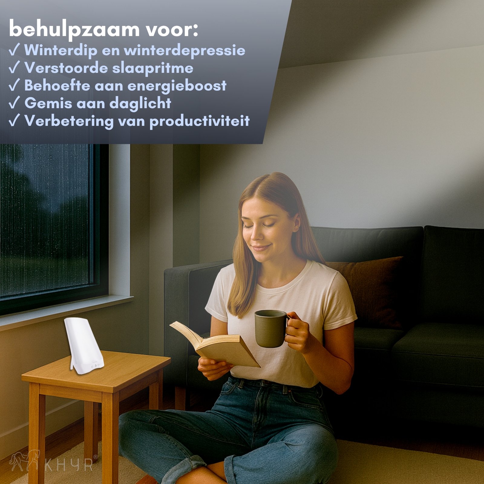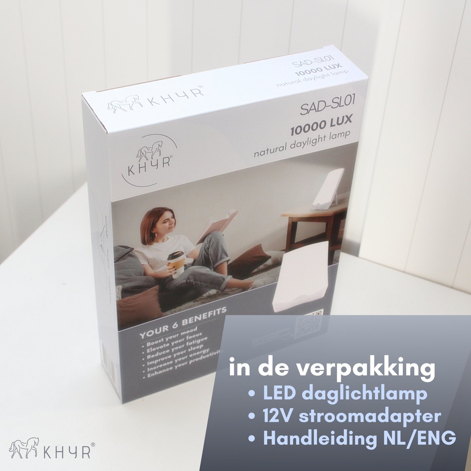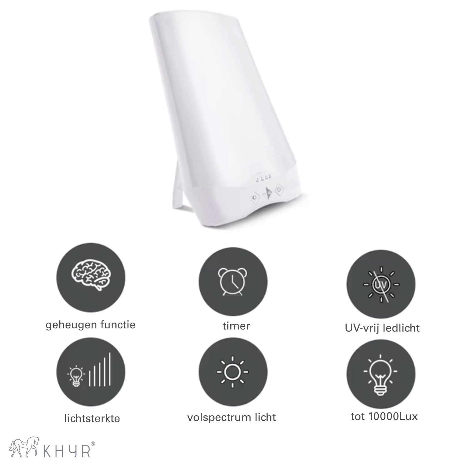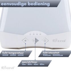 Ervaar meer energie, een betere stemming en verbeterde focus met de KHYR® SAD-SL01 Natuurlijk Daglichtlamp. Deze compacte lichttherapie lamp levert tot 10.000 lux helder, natuurlijk daglicht en ondersteunt je biologische ritme – ideaal tijdens donkere wintermaanden, bij vermoeidheid, een winterdip of wanneer je weinig daglicht ziet.