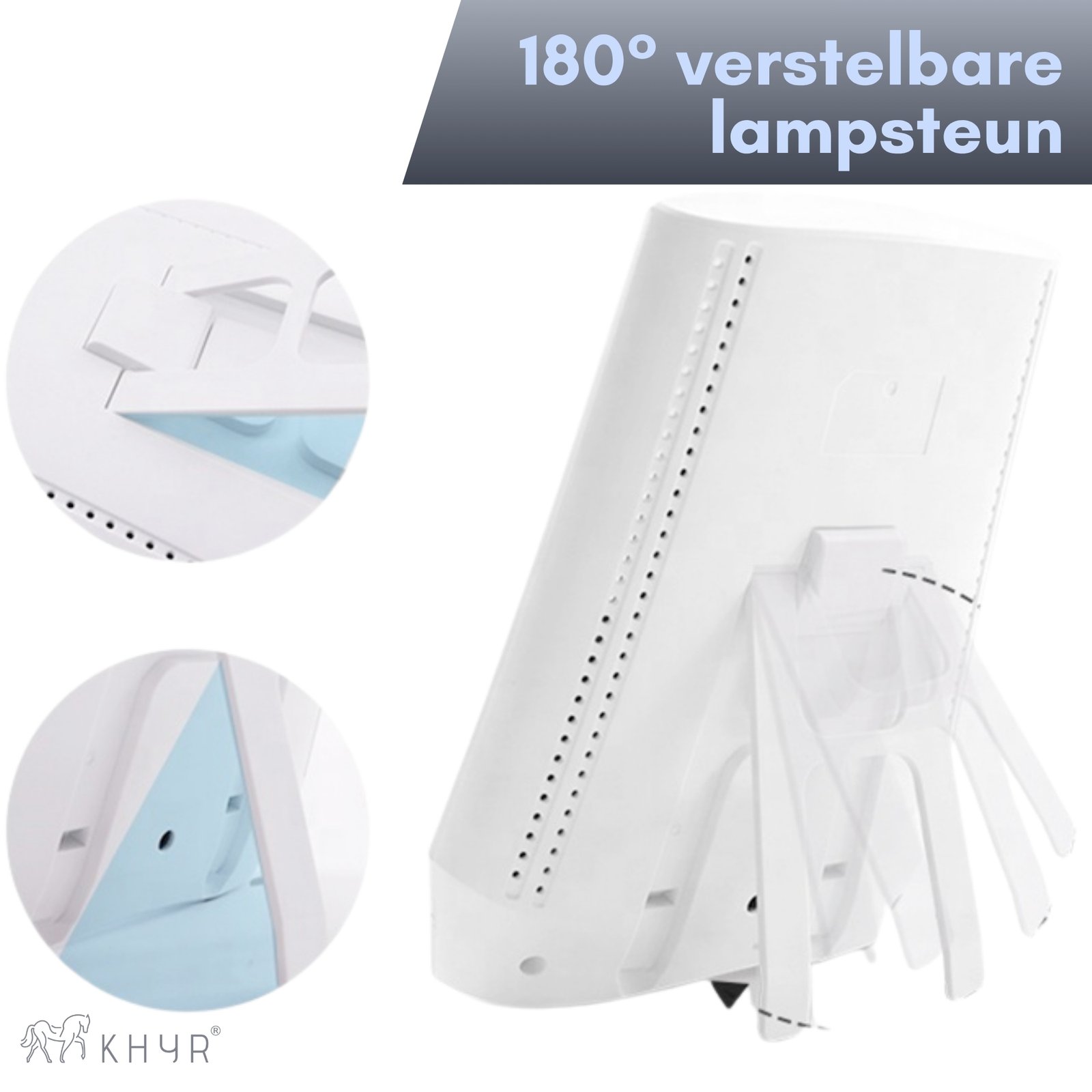 Met de praktische knoppen schakel je eenvoudig tussen kleurtemperaturen, dimniveaus en timerstanden. Hierdoor is de lamp direct gebruiksklaar voor elke situatie: tijdens je ochtendroutine, op kantoor of in de avond. De 180° verstelbare lampsteun maakt het instellen van de hoek